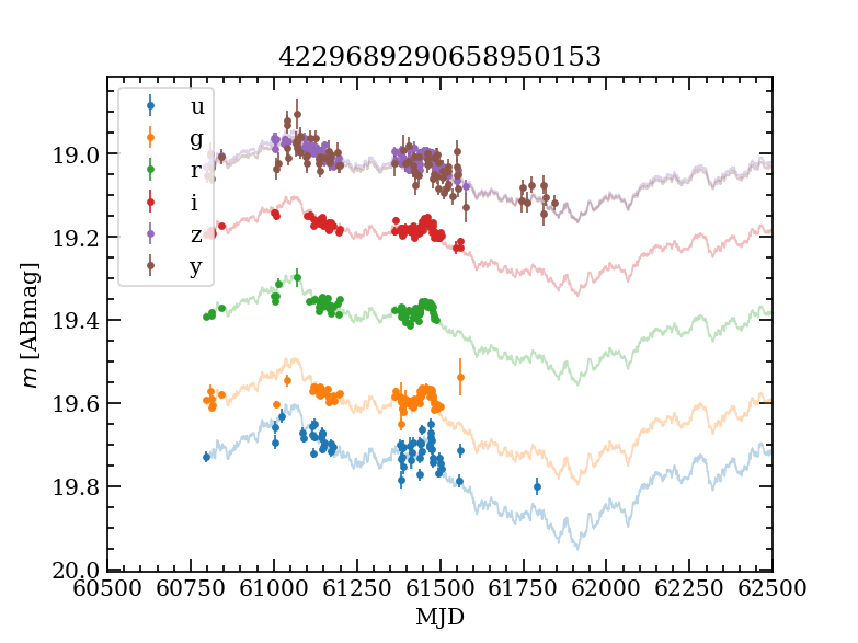 - AGN lightcurves are assigned based on a Damped Random Walk model taking into account physical AGN properties e.g. luminosity and MBH (Suberlak+ 2021)