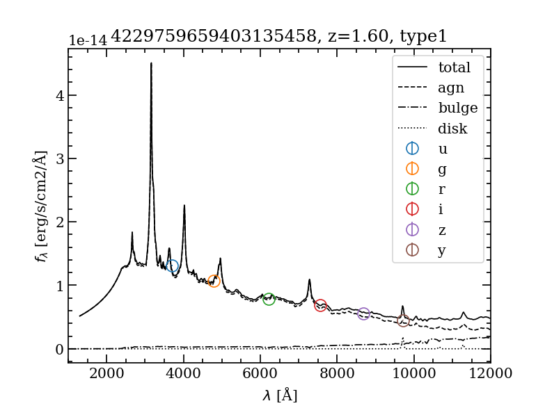 - SEDs of AGNs, galaxy bulges, and galaxy disks covering the wavelength range from 500 ang to 25 um.